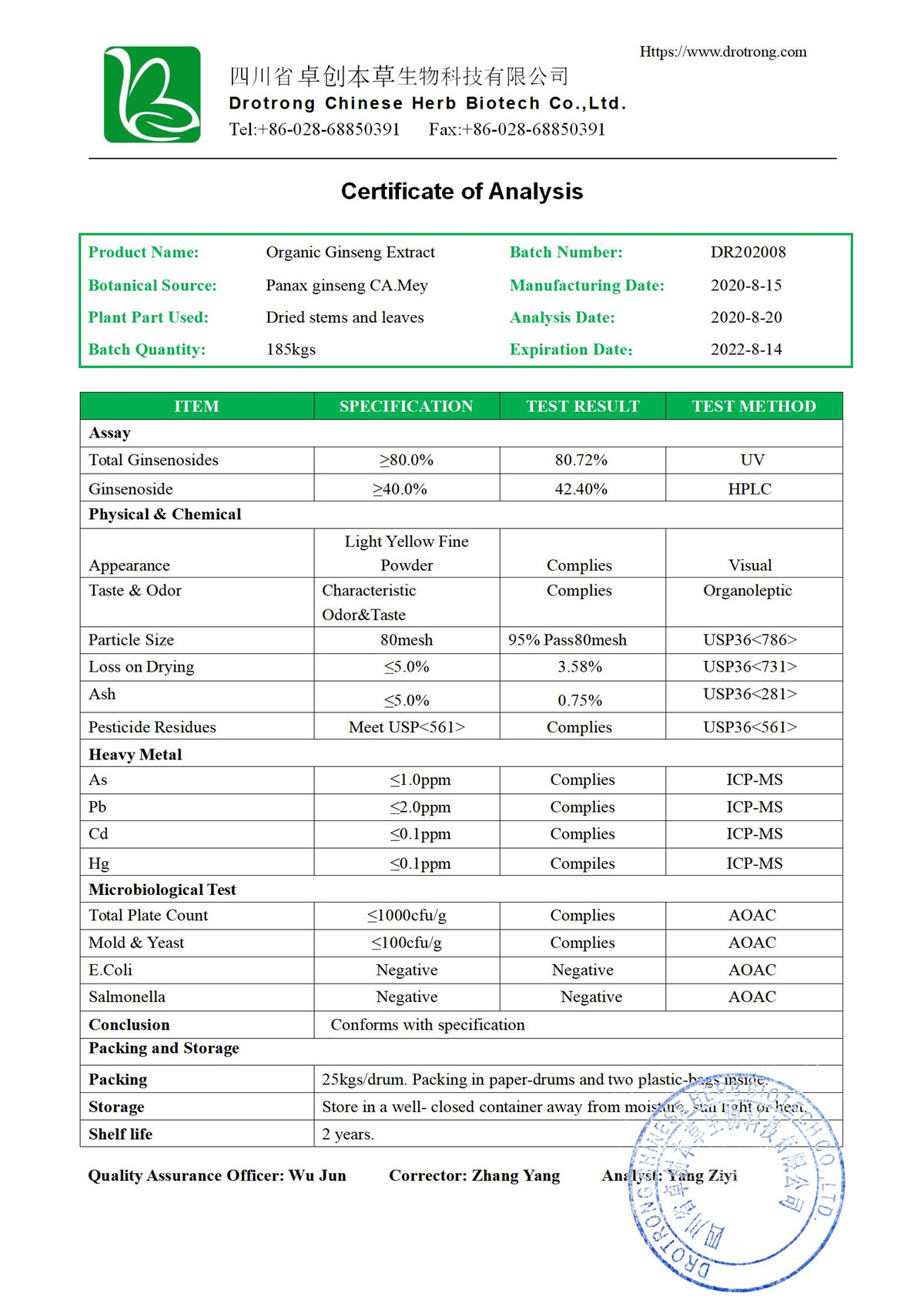 2021 wholesale price Matcha Tea Price - Ginsenoside ginseng root extract cosmetics grade – Drotrong Detail: