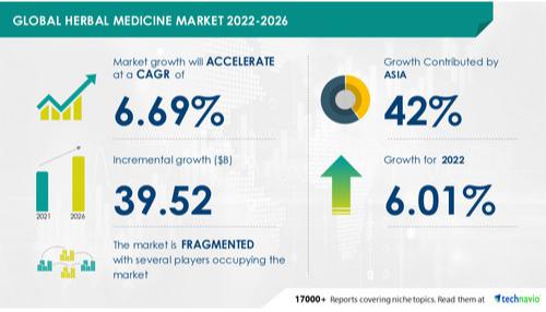 NEW YORK, 3 ianuarie 2022 /PRNewswire/ -- Piața globală a medicamentelor pe bază de plante observă o creștere substanțială în Asia.Țări precum China, Japonia și India apar ca piețe potențiale pentru medicamente pe bază de plante.Millennials din regiune prezintă o cerere semnificativă pentru produse alimentare dietetice și nutritive.De asemenea, o creștere a numărului de clienți autonomi care se bazează pe internet pentru informații despre diete echilibrate și nutriție are ca rezultat o trecere de la diagnosticarea și tratamentul medical către consumul de medicamente pe bază de plante.În plus, proliferarea magazinelor de vânzare cu amănuntul care vând medicamente pe bază de plante creează noi oportunități de creștere pentru jucătorii de pe piață
